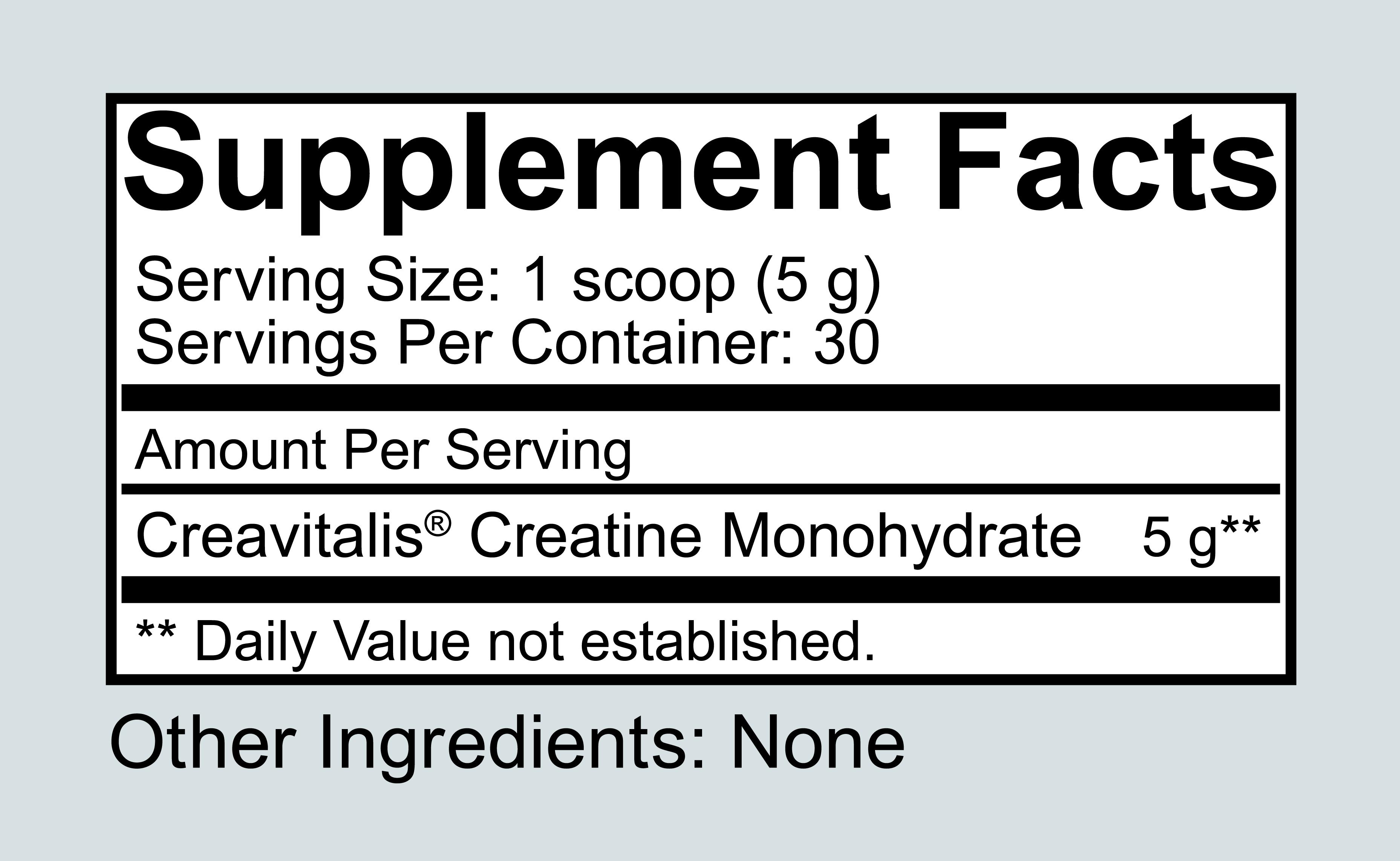 To us, quality doesn't just matter, it's vital. That's why our pure creatine monohydrate is micronized, so it mixes effortlessly and absorbs faster. It’s completely free of hormones and allergens—and like every product we make, it’s proudly crafted right here in the USA. Just one ingredient—nothing else. No harmful colorants, preservatives, binders, fillers, or stabilizers. Made with Creavitalis®, the world’s purest micronized and pharmaceutical-grade creatine, so you can feel confident you’re getting the highest-quality creatine available.