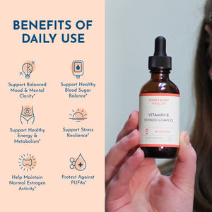 The essential B vitamins (B1, B2, B3, B6, B7) all in one rich formula specifically optimized for thyroid health.
