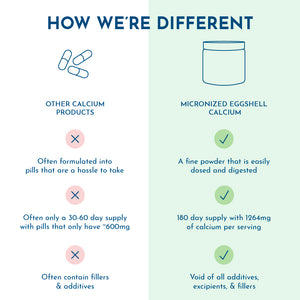Life is too short to live with aches & pains… Support healthy bones, joints, and muscleswith our tasteless, odorless Micronized Eggshell Calcium!