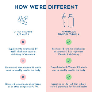 Our best-selling Vitamin ADK Thyroid Formula is optimized to help restore metabolism, boost natural immunity, restore youthful, healthy skin, reduce inflammation, restore bone & joint health, protect against heart disease, and so much more!